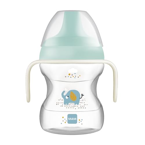 MAM Gobelet d'apprentissage de 190 ml avec poignées de biberon MAM phosphorescentes - Pour l'alimentation du bébé et l'apprentissage de la boisson - Bleu (différents modèles)