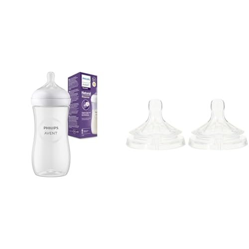 Philips Avent Biberon à Réponse Naturelle de 330 ml, sans BPA pour les bébés de 3 mois & Avent Lot de 2 tétines pour biberons Natural avec 4 trous pour les bébés de 6 mois et + (Modèle SCF044/27)