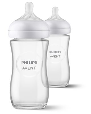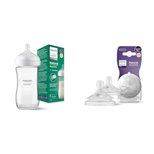 Philips Avent Biberon en verre à Réponse Naturelle – biberon de 240 ml & Avent Lot de 2 tétines pour biberon à Réponse Naturelle 0% BPA, Débit 4 pour Bébé de 3 mois + (modèle SCY964/02)