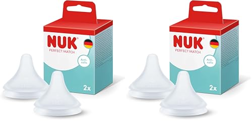 NUK Perfect Match Tétines de biberon | 6 mois et + | Tétines anti-coliques pour biberon | Silicone | Contrôle du débit | Lot de 4