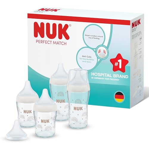 NUK Perfect Match Biberons | 0-3+ mois | 120 ml & 230 ml | Biberon anti-coliques | Verre | Indicateur de contrôle de température | Arc-en-ciel | Lot de 4
