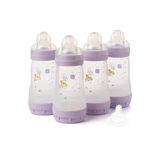 MAM Easy Start Lot de 4 biberons anti-coliques auto-stérilisants MAM à débit lent Taille 1 + 1 tétine à débit moyen Taille 2 Unisexe