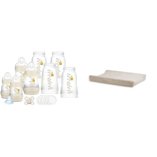 Mam Ensemble de 8 biberons de 130 ml, 160 ml et 260 ml, 1 tétine Start Nanò & Jollein Housse de Matelas à Langer en Tissu Éponge, 50 cm Longueur x 70 cm Largeur, Nougat 550-503-00093