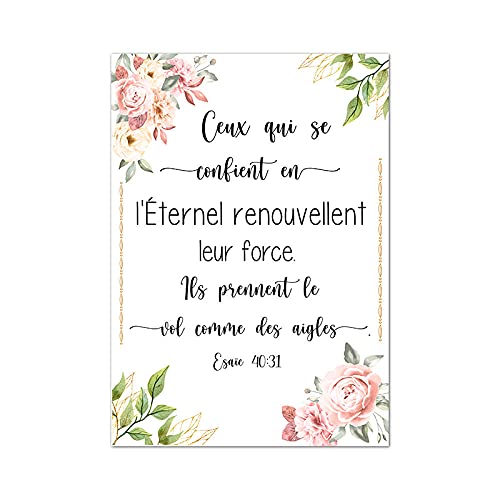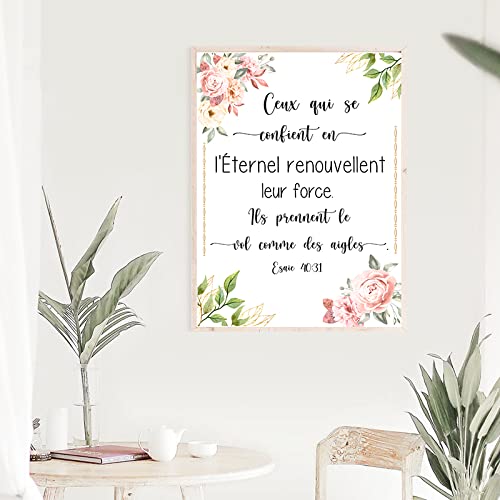 zuomu Français Bible Verset Esaie 40:31Citation Toile Impression Ecriture Art Peinture Moderne Minimaliste Affiche Mur Photo Home Room Decor 50x70cm Sans Cadre
