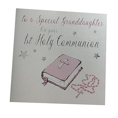WHITE COTTON CARDS Grande Carte Faite à la Main to a Special Granddaughter on Your 1st Communion Rose Bible Carte, Blanc