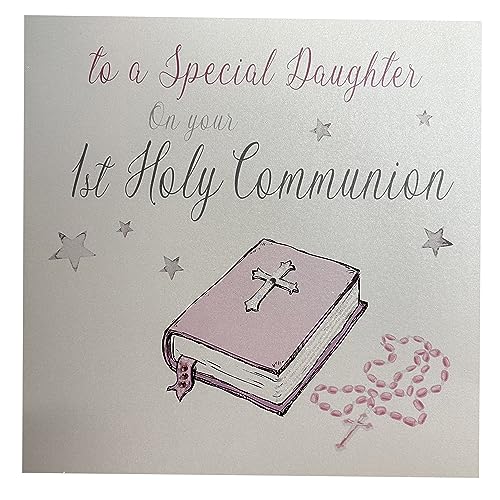 WHITE COTTON CARDS Grande Carte Faite à la Main to a Special Daughter on Your 1st Communion Rose Bible Carte, Blanc