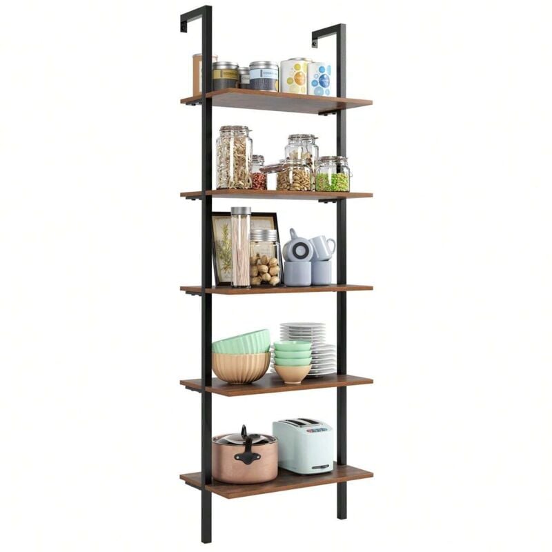 Tlgreen - tagère murale à 5 niveaux en métal pour salle de séjour,bibliothèque cd dvd, panneau mural en bois 184,5x60x35cm