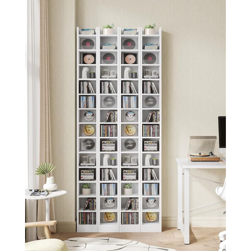 Étagère pour CD DVD Bibliothèque - Espace pour 102/204 CD ou 36/72 DVD / Blue Ray - Étagère de Salon - Étagère à Livres - Disponible en 4 Couleurs (6 étagères, Blanche)