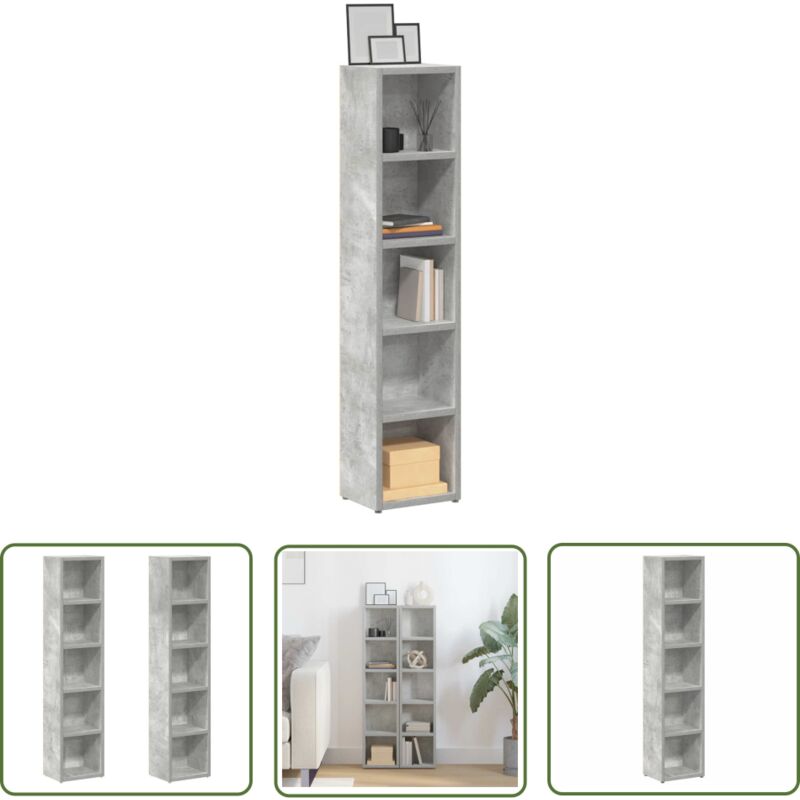 The Living Store - Armoires à cd 2 pcs Gris béton 21x16x93,5 cm Aggloméré - Meuble tv - Bibliothèque - Rangement Cd - Rangement Dvd - Rangement Blu
