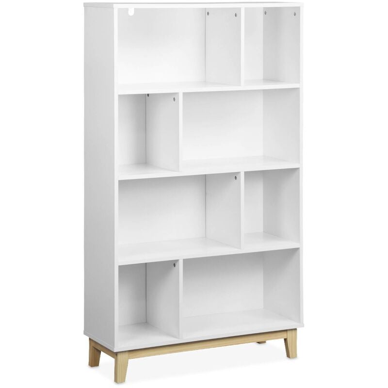 Sweeek Bibliothèque scandinave blanche. étagère asymétrique - Floki pieds en bois de sapin. 4 étagères. 8 compartiments. 80x30x138cm