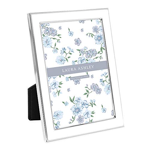 Laura Ashley Cadre photo en émail blanc, bord en métal argenté avec chevalet, pour comptoir, comptoir, table, bibliothèque, bureau, décoration murale, galerie photos 12,7 x 17,8 cm