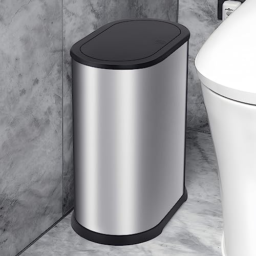 Anzoymx Petite poubelle de salle de bain en acier inoxydable de 5 litres avec couvercle escamotable, corbeille à litière étroite résistante aux chiens pour chambre à coucher, toilettes, bureau (argent