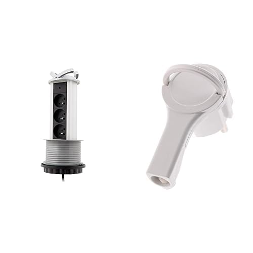 Zenitech - Bloc 3 Prises Escamotable 16A 2P+T avec Câble HO5VV-F 1,60 m - Gris pour Bureau et Maison + Multiprise Biplite 16A à Intégration Discrète pour Cuisine, Bureau ou Atelier