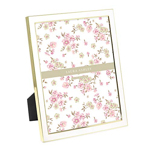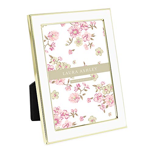 Laura Ashley Cadre photo en émail blanc - 20,3 x 25,4 cm - Bord en métal doré avec chevalet - Pour comptoir, comptoir, table, bibliothèque, bureau, décoration murale, galerie photos