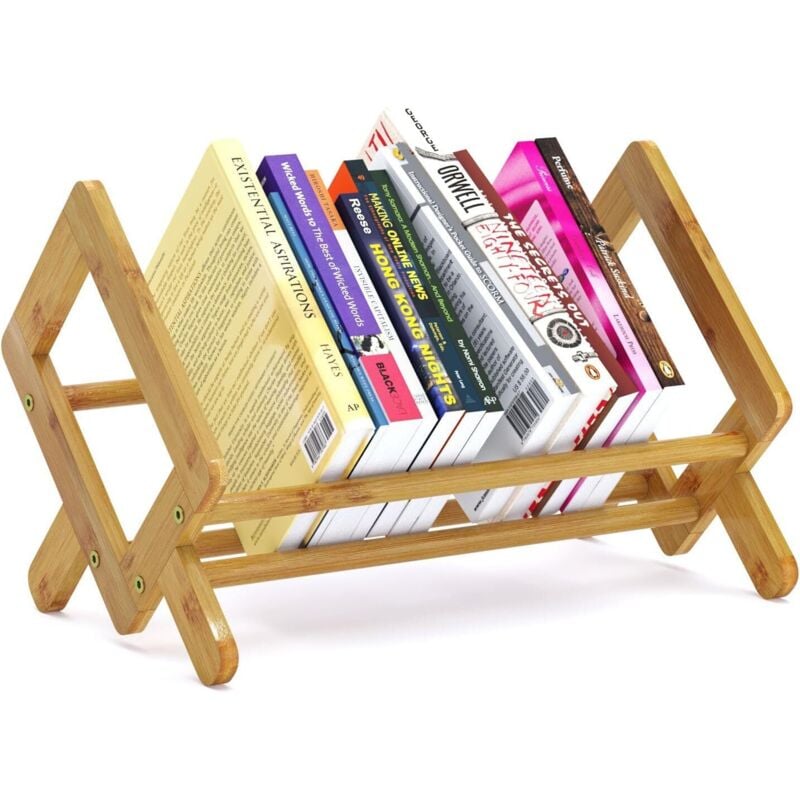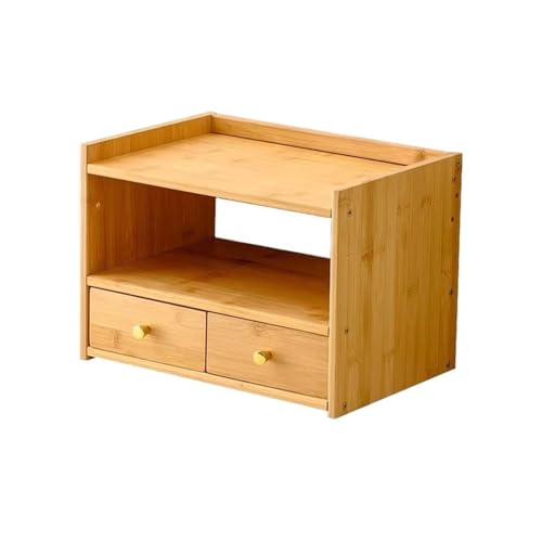 Bibliothèque de Bureau Extensible en Bambou, étagère avec 2 tiroirs, Bois Naturel, à Monter soi-même
