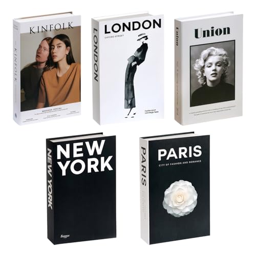 Lot de 5 Livres Décoratifs en Carton Rigide - Faux Livres pour Décoration d'Intérieur - Livres d'Exposition pour Table Basse, Bibliothèque ou Bureau - Style Moderne et Élégant (A)