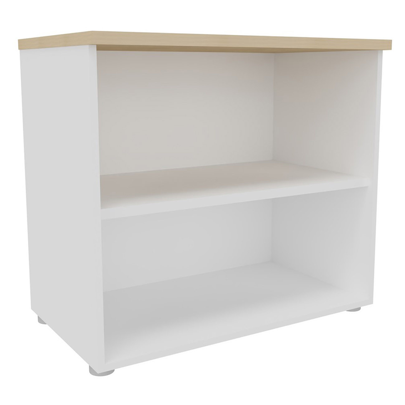 Bibliothèque basse sans porte L.80 x P.48 x H.72 cm - Corps Blanc - Top Chêne