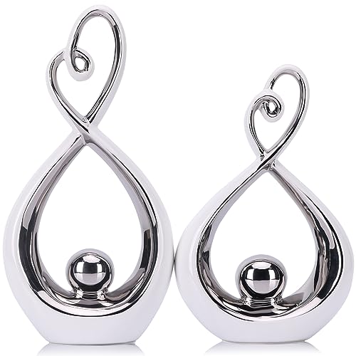 Décoration argentée, Art en Porcelaine Moderne du Milieu du siècle, décorations Blanches argentées et argentées pour Tables, Statue Abstraite en céramique – pour Table Basse, bibliothèque, Support TV