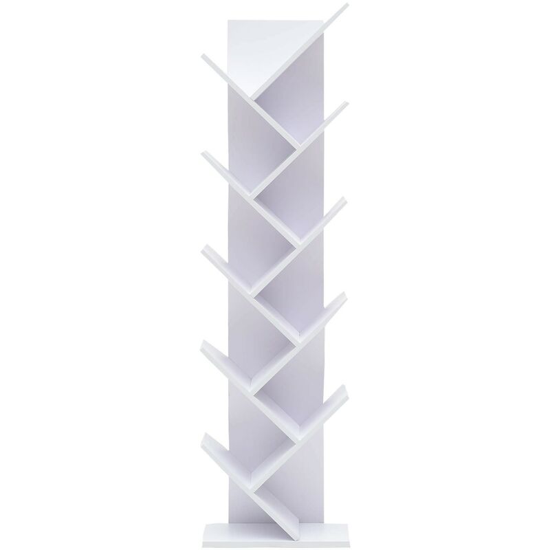 Ml design Bibliothèque de Rangement, Étagère à 8 Niveaux en Forme d'Arbre, en Bois, 50x25x140 cm, Blanc, Robuste et Résistant aux Rayures, Étagère de
