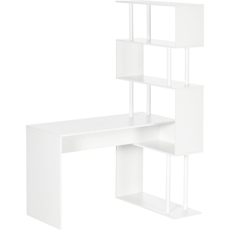 Homcom – Bureau d'angle rotatif blanc 117x82x74cm – Panneau de particules – Multi-rangements : tiroir, placard, bibliothèque – Design contemporain