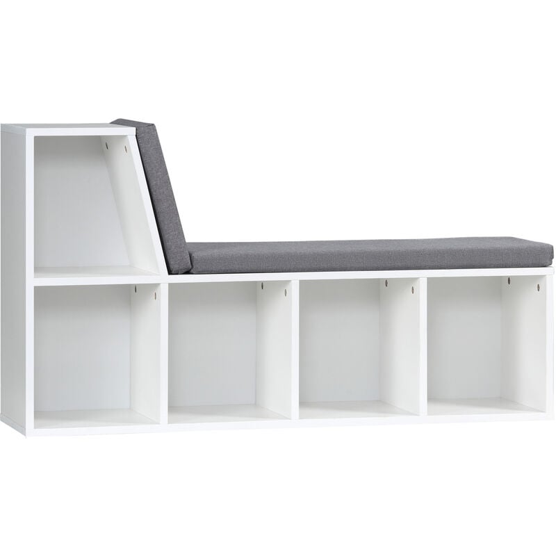 Homcom - Bibliothèque banc 2 en 1 design contemporain 6 casiers 3 coussins fournis 102L x 30l x 61H cm blanc gris chiné