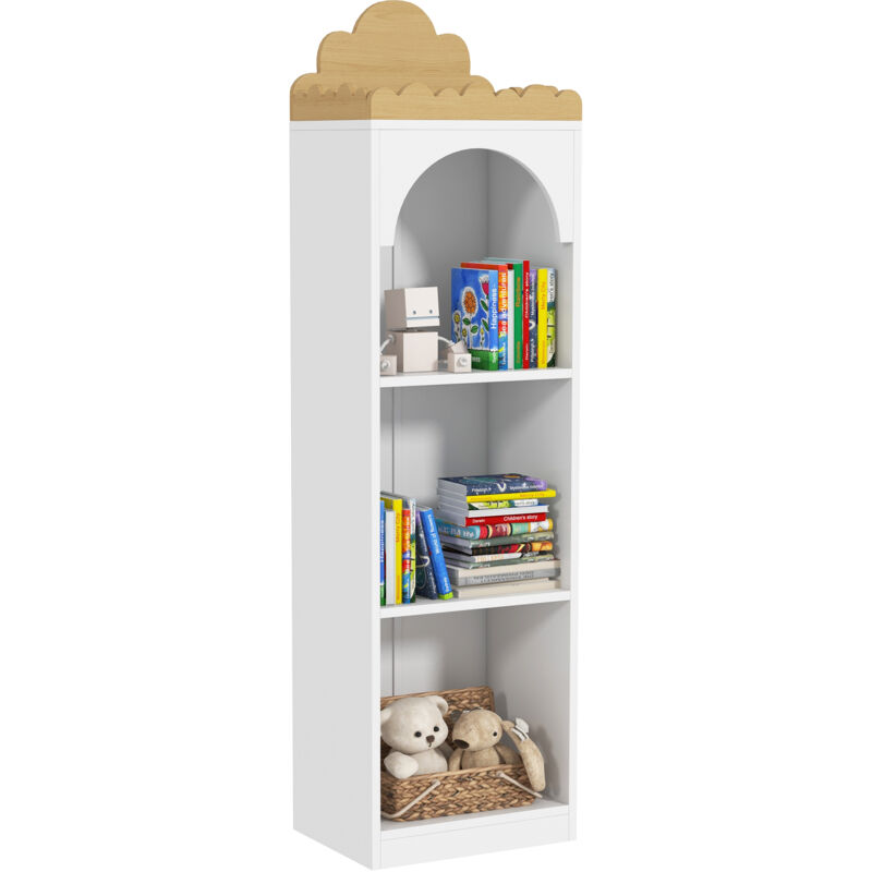 AIYAPLAY Bibliothèque Enfant, étagère pour Jouets, 3 Niveaux, Joli Design Nuage, Meuble de Rangement pour Enfant, Rangement Livre Enfant, 40 x 30 x 139,5 cm, pour Chambre, Coin Lecture, Blanc