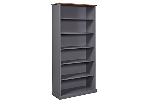Inter Link - Bibliothèque - Armoire-buffet - Vaisselle - Salle à manger - Style cottage - Bois massif FSC - 5 étagères ouvertes - Luzerna 5 - Gris