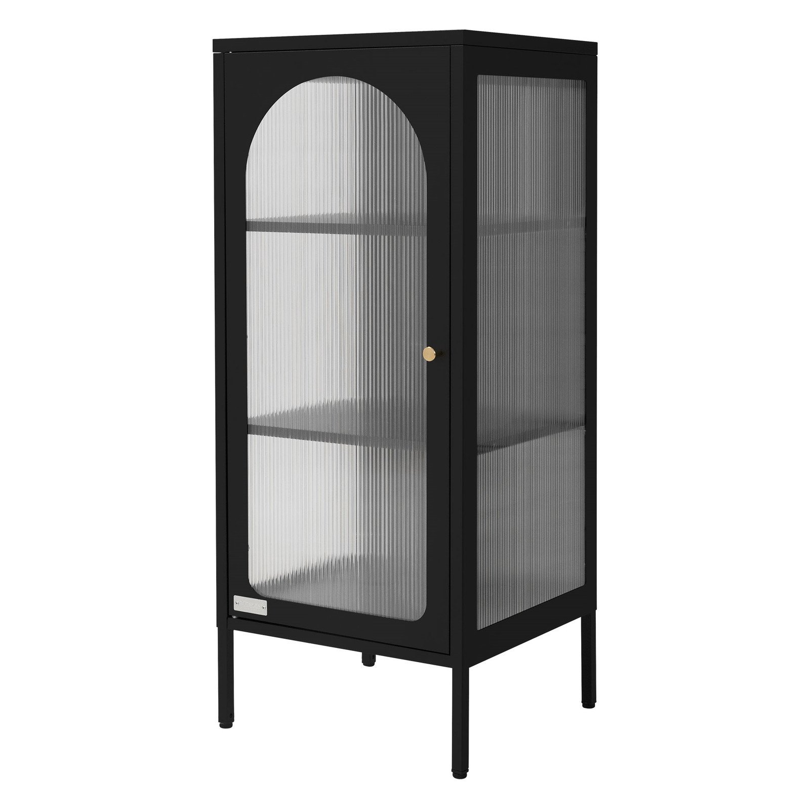 Vitrine armoire haute salon sur pieds réglables bibliothèque buffet noir acier