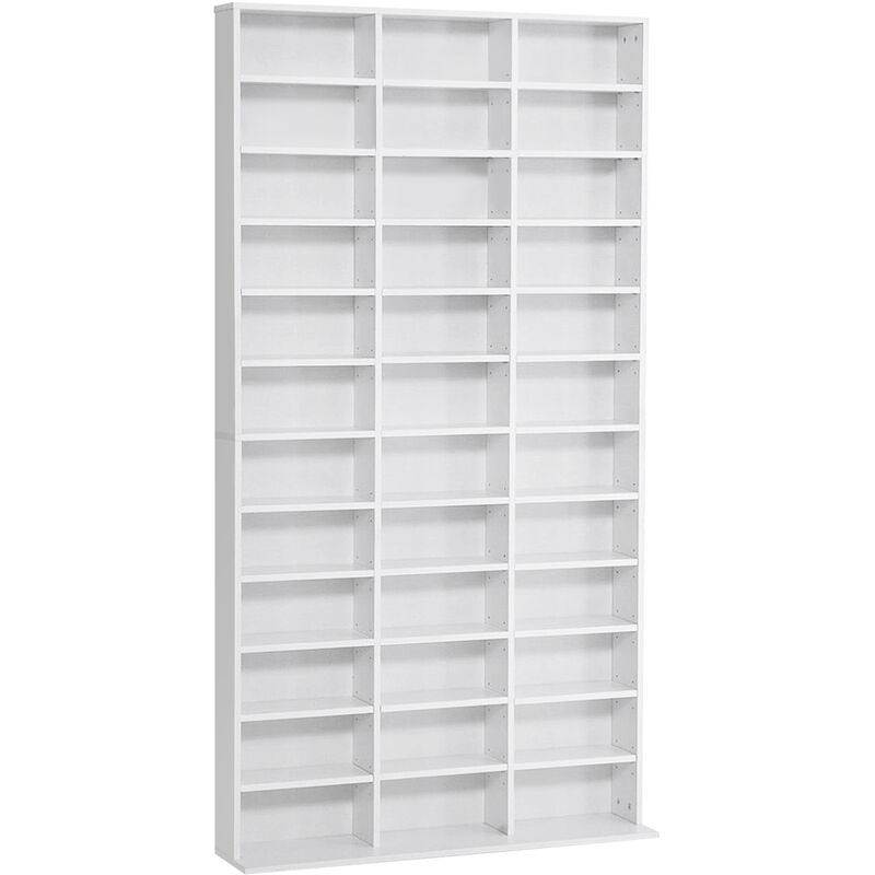 Meuble de rangement multimédia 456 CD/ 336 DVD - HOMCOM - bibliothèque en bois avec étagères réglables - 89 x 1305 cm - blanc
