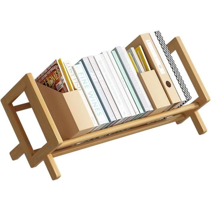 Bibliothèque de Bureau Extensible en Bambou, étagère avec 2 tiroirs, Bois Naturel, à Monter soi-même