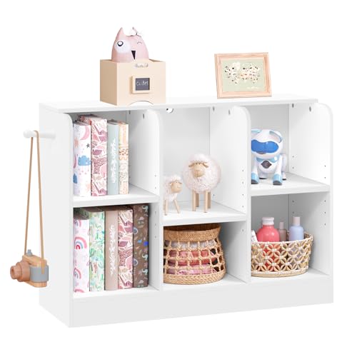 Lestarain Bibliothèque Enfant, Étagère à 6 Compartiments, Meuble Rangement avec Étagères Réglables, pour Chambre d'Enfant, Salle de Jeux, 91,5x30x60cm, Blanc