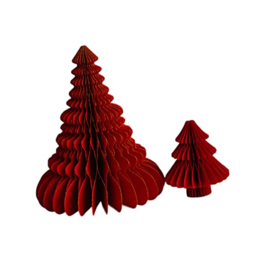 perfeclan Lot de 2 Figurines Décoratives en Papier pour Sapin de Noël, Arbres de Noël Pliable, Vintage, Ornement DIY pour Bibliothèque et Bureau, Décoration de Table et Allée, Rouge