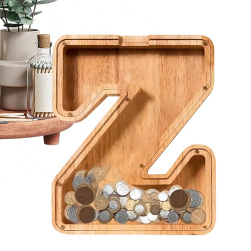 Tirelires En Bois En Forme De Lettre Pour - Économiseur Monnaie en Bois | Boîte à Argent Sécurisée Avec Autocollants, Couvercle Transparent Pour Bibliothèque et Bureau