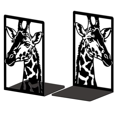 Peacoblue Lot de 2 Serre-Livres en métal, Serre Livre Girafe,avec Autocollants antidérapants pour Chambre à Coucher, bibliothèque, Bureau, école et Bureau(1 Paires)
