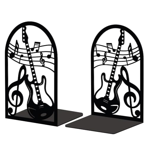Peacoblue Lot de 2 Serre-Livres en métal, Serre Livre Guitare Et Note Musicale,avec Autocollants antidérapants pour Chambre à Coucher, bibliothèque, Bureau, école et Bureau(1 Paires)