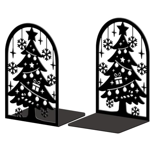 Peacoblue Lot de 2 Serre-Livres en métal, Serre Livre Sapin De Noël,avec Autocollants antidérapants pour Chambre à Coucher, bibliothèque, Bureau, école et Bureau(1 Paires)