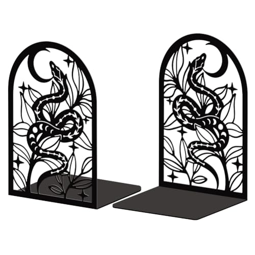 Peacoblue Lot de 2 Serre-Livres en métal, Serre Livre Bohème Serpent Et Fleur,avec Autocollants antidérapants pour Chambre à Coucher, bibliothèque, Bureau, école et Bureau(1 Paires)