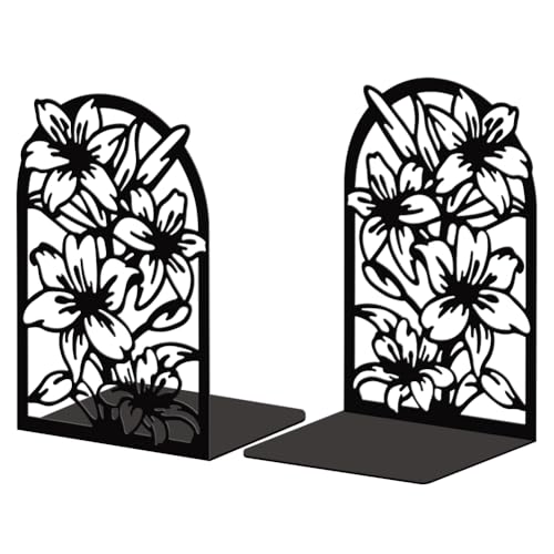 Peacoblue Lot de 2 Serre-Livres en métal, Serre Livre Fleur De Lys,avec Autocollants antidérapants pour Chambre à Coucher, bibliothèque, Bureau, école et Bureau(1 Paires)