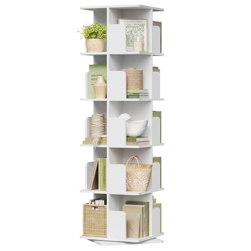 EUGAD Bibliothèque Tournante à 5 Niveaux, Bibliothèque Étroite et Haute, Étagère d'angle sur Pied, Étagère à Livres, en Blanc