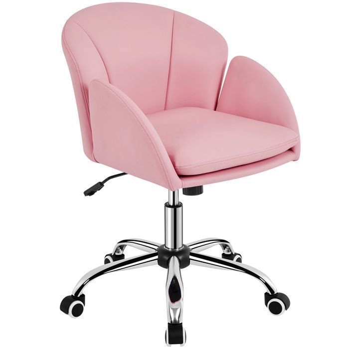 Fauteuil de Bureau Design Fleur en Similicuir-Réglable en Hauteur et Dossier InclinablePour Bureau/Bibliothèque-Rose-YAHEETECH