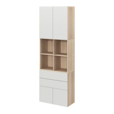 Bibliothèque semi ouverte gris clair et blanc 4 portes 2 tiroirs GoodHome Atomia H. 225 x L. 75 x P. 35 cm
