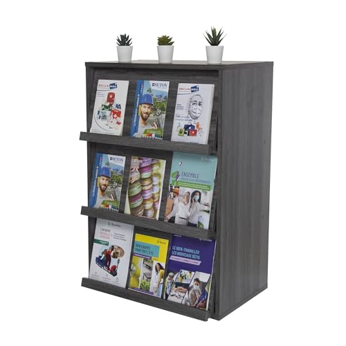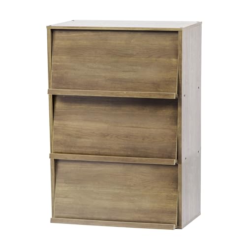 Iris Ohyama, Meuble, Bibliothèque, Étagère de Rangement, 3 Portes rabattables, Design, Solide, Moderne, Multi-Usage, Bureau, Chambre, Salon - Flap Rack CHR-3 - Chêne Gris