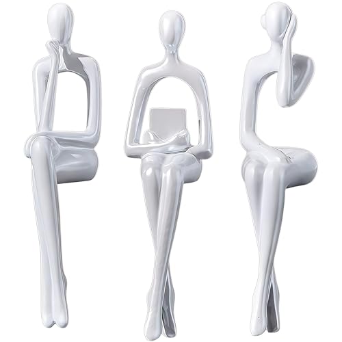 AMAHPSPE Statue de penseur en Train de Lire - Figurine d'art Abstrait - Décoration d'intérieur Moderne - Décoration Blanche - Figurines de penseur Blanches pour Salon, étagères, bibliothèque, Bureau,