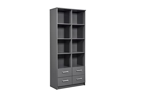 Inter Link Étagère Bibliothèque 8 Niches et 4 Tiroirs | Meuble de Rangement pour Salon, Bureau et Chambre | Design Scandinave Moderne | 81.5 x 40 x 191.2 cm| Gris Graphite