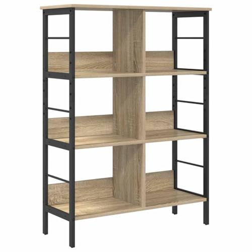 KKgypkn Bibliothèque moderne de style industriel en chêne Sonoma - Étagère autoportante robuste avec cadre en acier et pieds réglables pour la maison et le salon