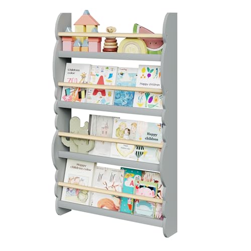 WOLTU Bibliothèque Murale, Étagère de Rangement pour Chambre d'enfants pour Ranger des Livres, 60x14,5x98 cm,Jouets en Bois MDF à 4 Niveaux, Gris