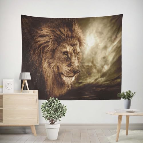 EHOMERY Tapisserie Oriental Tenture Murale XXL Nature Lion Tapisserie Murale Bibliothèque Tenture Murale 3D Décoration Murale pour Le Salon Et La Chambre 200x200cm