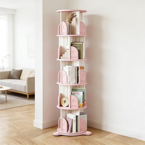 AityBuy Bibliothèque Rotative en Bambou, Bibliothèque Rotative à 360 °, étagère De Rangement, étagère De Rangement sur Pied, Organisateur Rotatif, pour Petit Espace OriginalColor-5Tier