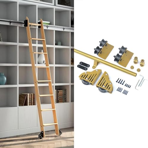 Kit de quincaillerie pour porte de grange coulissante avec rail roulant et échelle pour bibliothèque