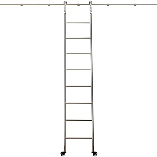 CuNtoHHH Kit de quincaillerie pour échelle coulissante – Rails d'échelle coulissante de bibliothèque en Acier Inoxydable, kit de quincaillerie pour Porte de Grange, Rail d'échelle Mobile avec Roues a